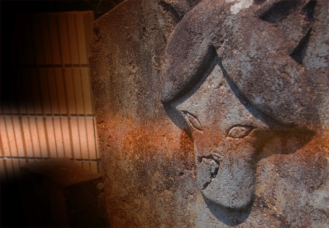 「この柱、変わってるよね。お化けみたいな顔があるし、ほかのに比べて古いし…」