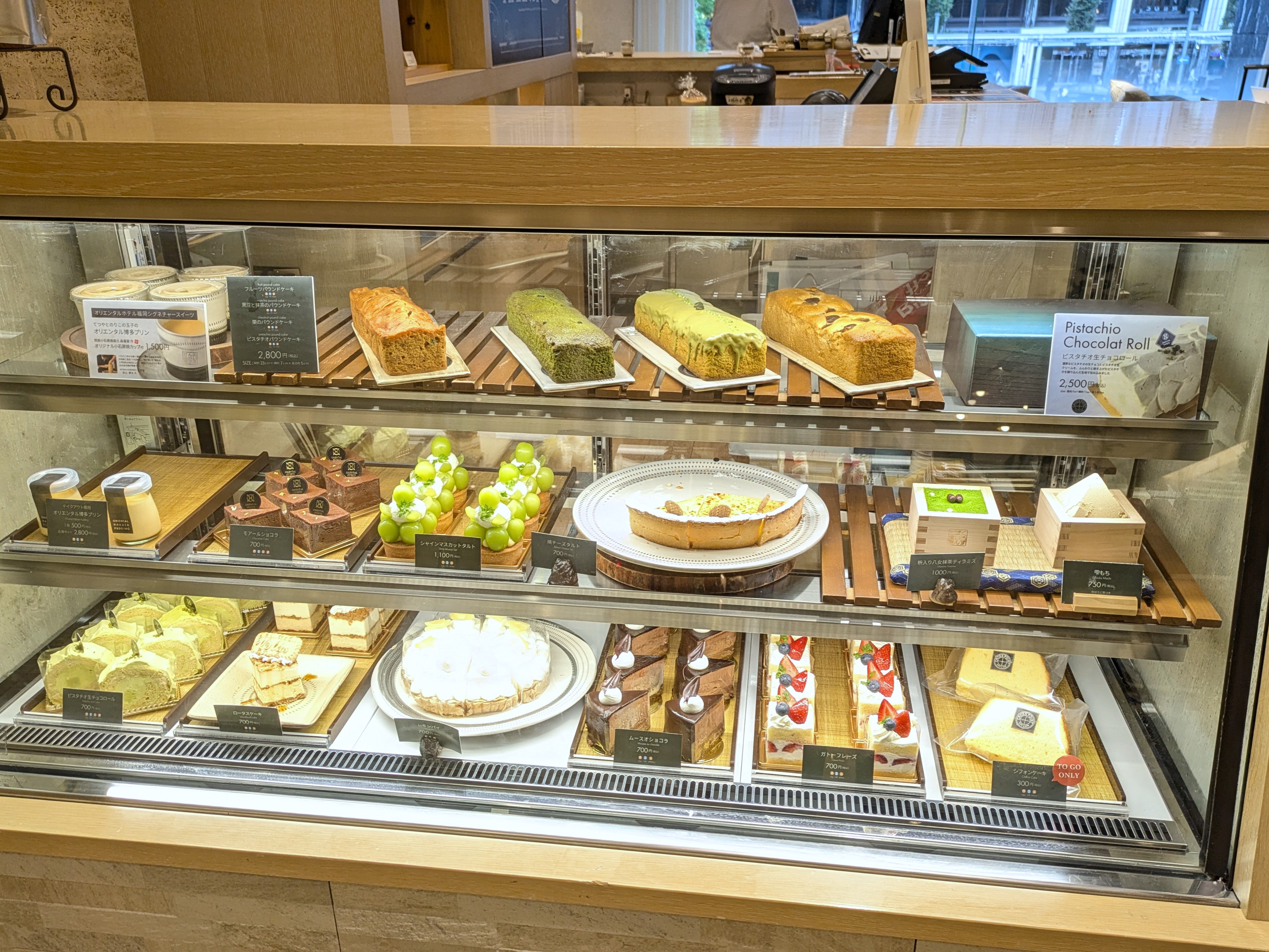 常時14~15種前後のスイーツが並ぶショーケース