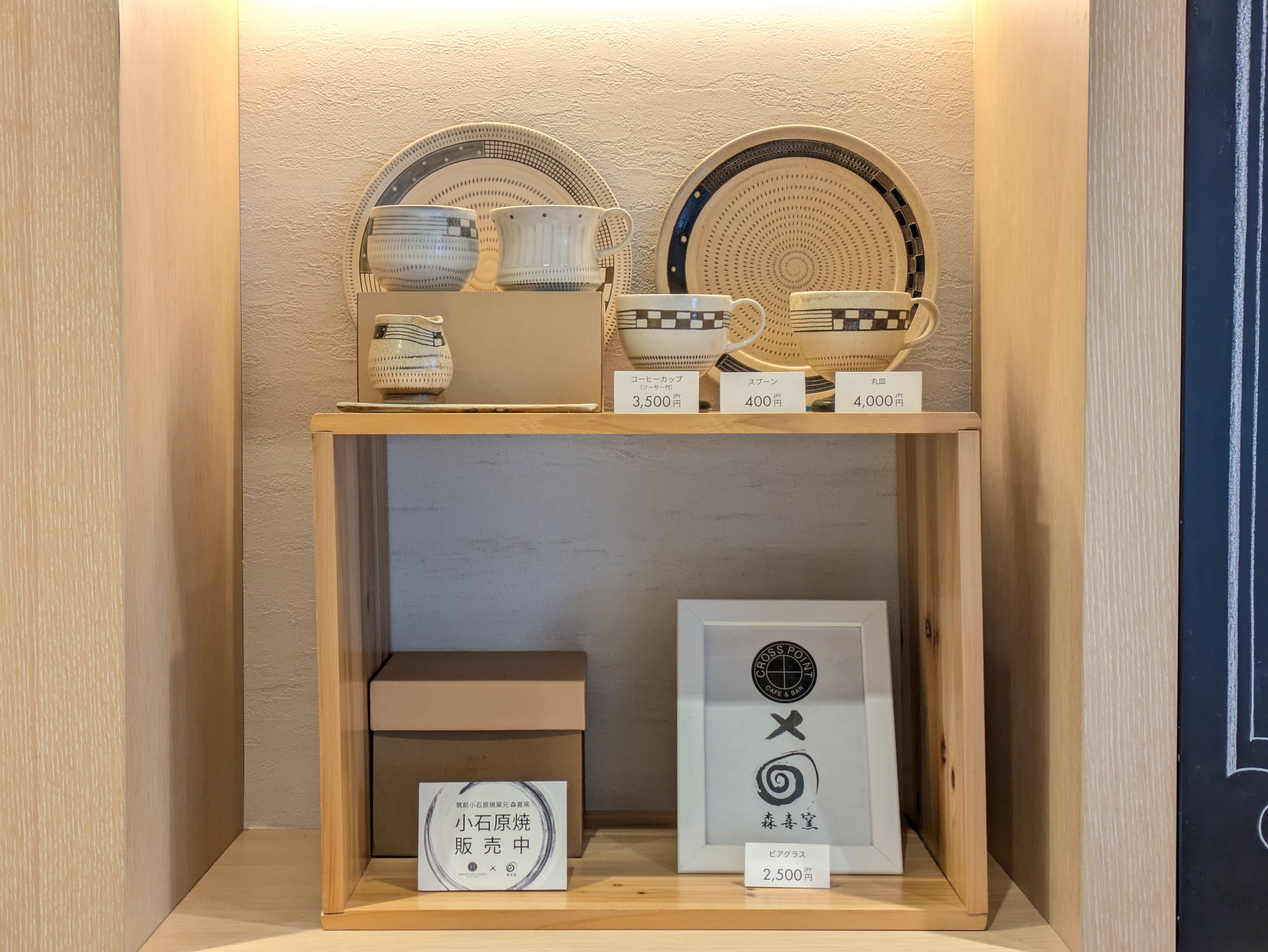 店で使われるオリジナルの小石原焼は店頭販売も。気に入って購入する人も多いそう