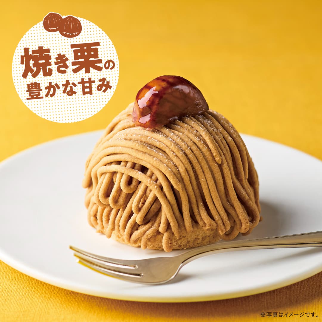 秋の定番スイーツ「モンブラン」が、焼き栗の香ばしさと深みを加えて登場。ふんわりスポンジにホイップクリーム、焼き栗ペースト入りのマロンクリームを重ね、仕上げに栗をトッピング。コーヒーとの相性も抜群です。