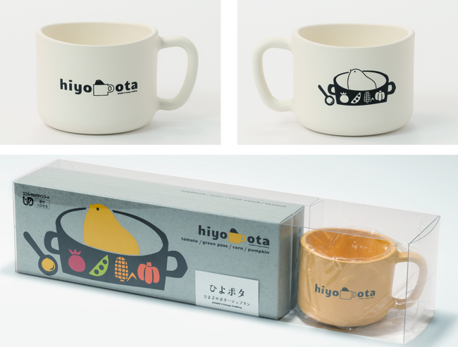 「ひよポタ」4個入りとオリジナルマグカップがセットになった数量限定商品も発売。マグは黄色と白の2色展開で、電子レンジや食洗機にも対応しています。