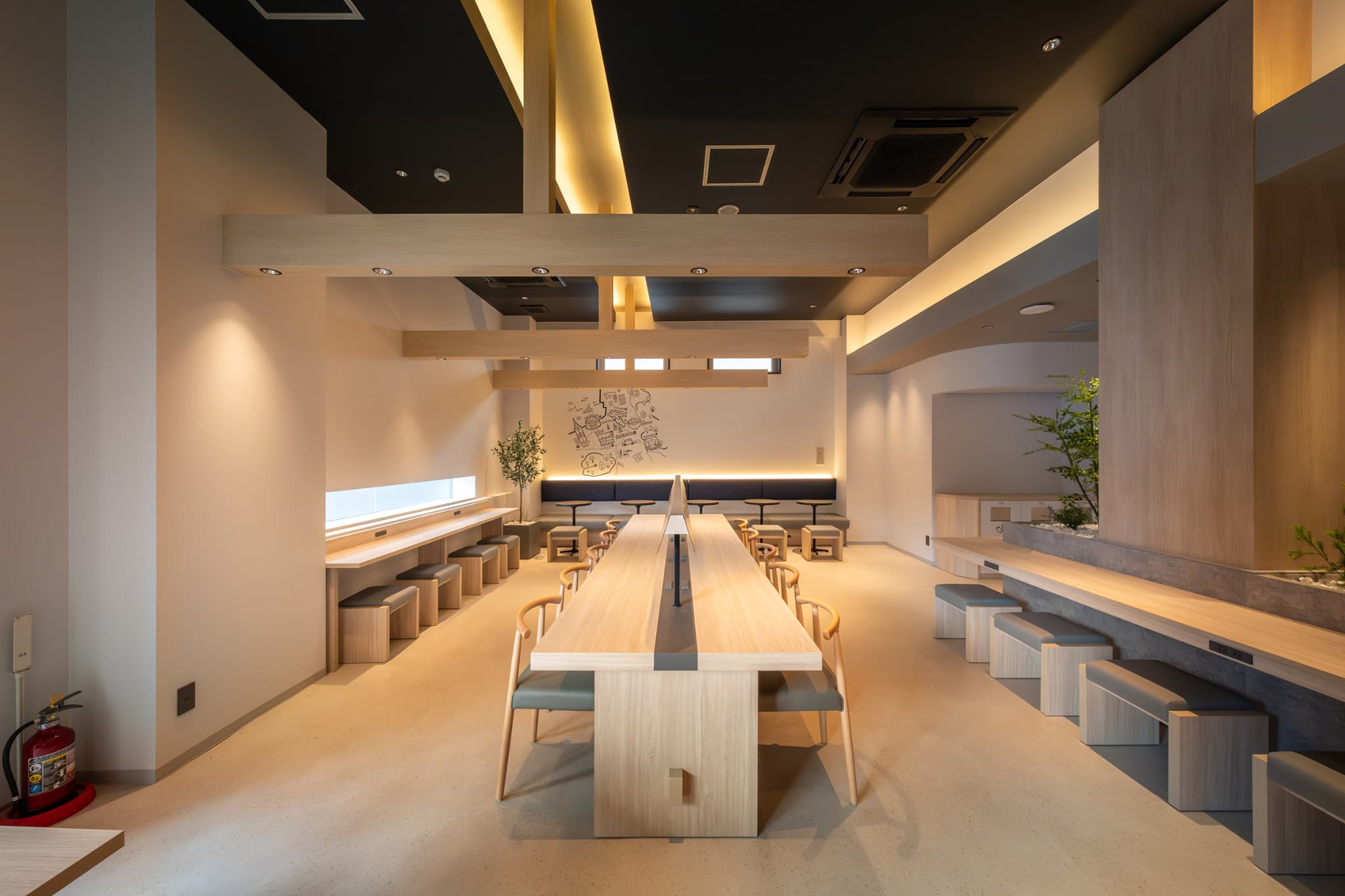 「Comic&Books」シリーズならではのマンガライブラリーでは、約1万冊の蔵書を自由に楽しめます。さらに、福岡県出身の漫画家による特別コーナーも設置されており、地元の文化や街の魅力をマンガを通して感じることができます。広々としたフリースペースもあり、読書やくつろぎの時間をゆったりと過ごせるのも嬉しいポイントです。