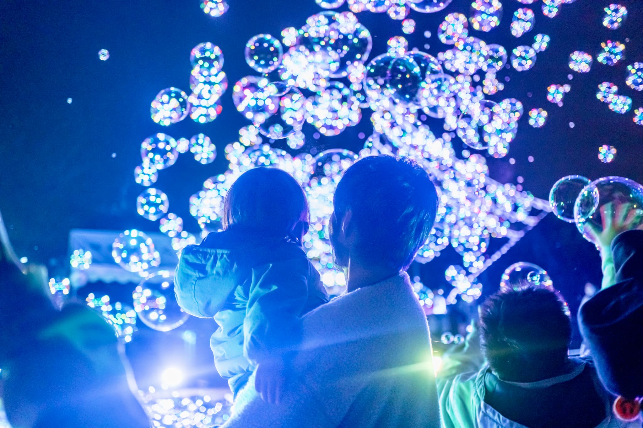 夜空に舞うシャボン玉と光の魔法「ナイトバブル」