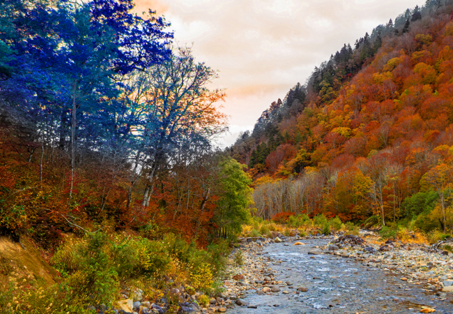 空が明るみ始めた頃、朝霧の立つ道の先にあの女将がいた。