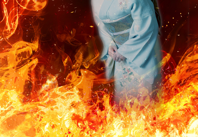 井笠がそう言った刹那、突然提灯が燃え上がり仲居に火が燃え移った。