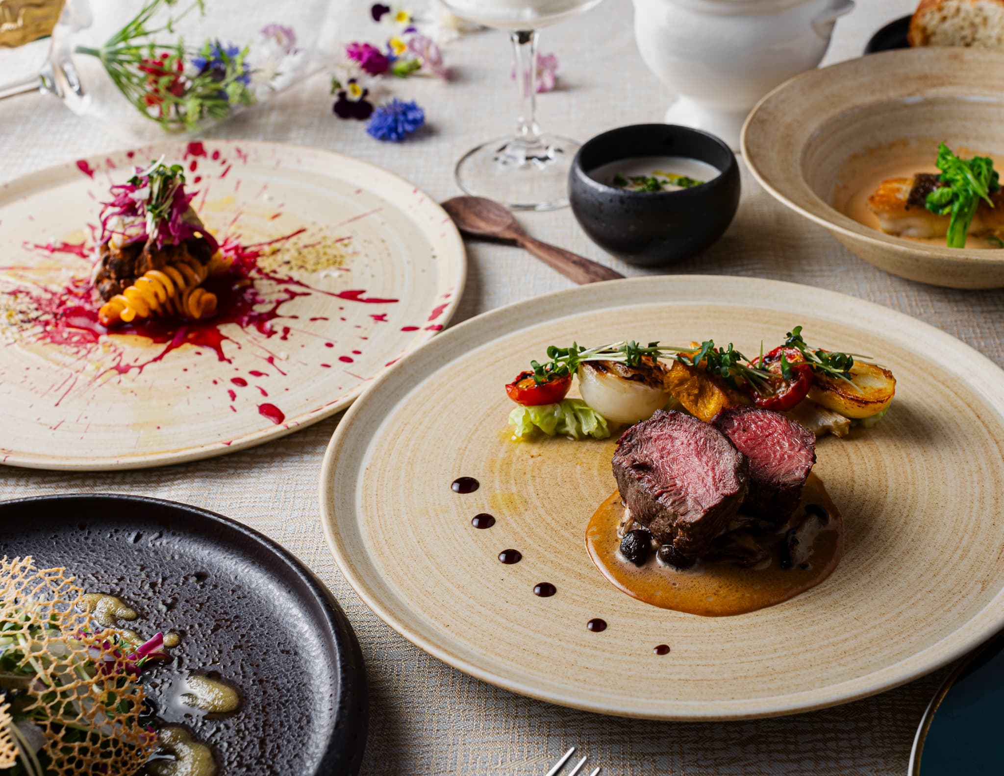 ・連泊プランでは1泊目にフレンチ、2泊目に炭火焼き料理