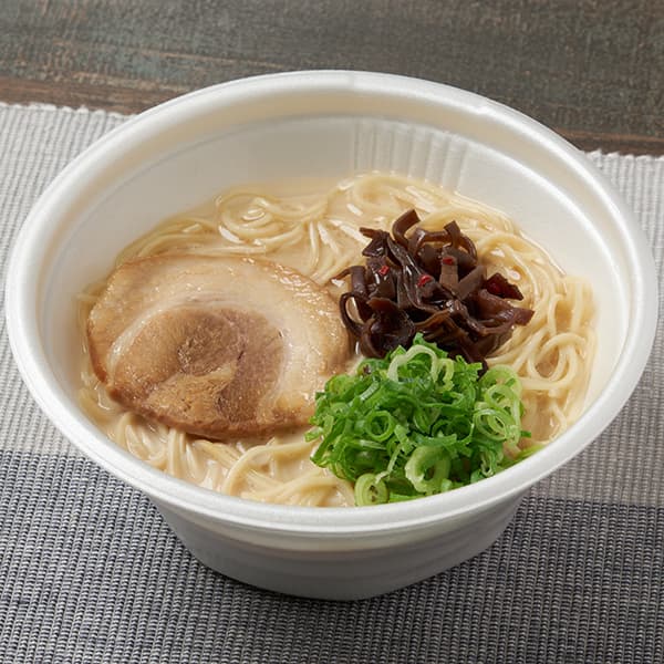 福岡市発祥の「博多一風堂」が監修。歯切れのよい細麺に、豚骨スープやラードを合わせたなめらかなスープが特徴。チャーシュー、木耳、青ねぎのトッピングも嬉しいポイントです。