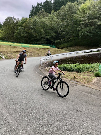 南小国町らしい冒険心くすぐるコースを、経験豊富なガイドがサポートしてくれます。眼下に広がる阿蘇くじゅうの雄大なパノラマは、思わず息をのむ美しさです。ゴールした後は、参加者みんなでBBQタイム!心地よい汗をかいたあとの食事は、きっと格別の美味しさですね♪電動アシストMTBのレンタルやサポートカーも帯同するので、家族みんなで安心して参加できます。
