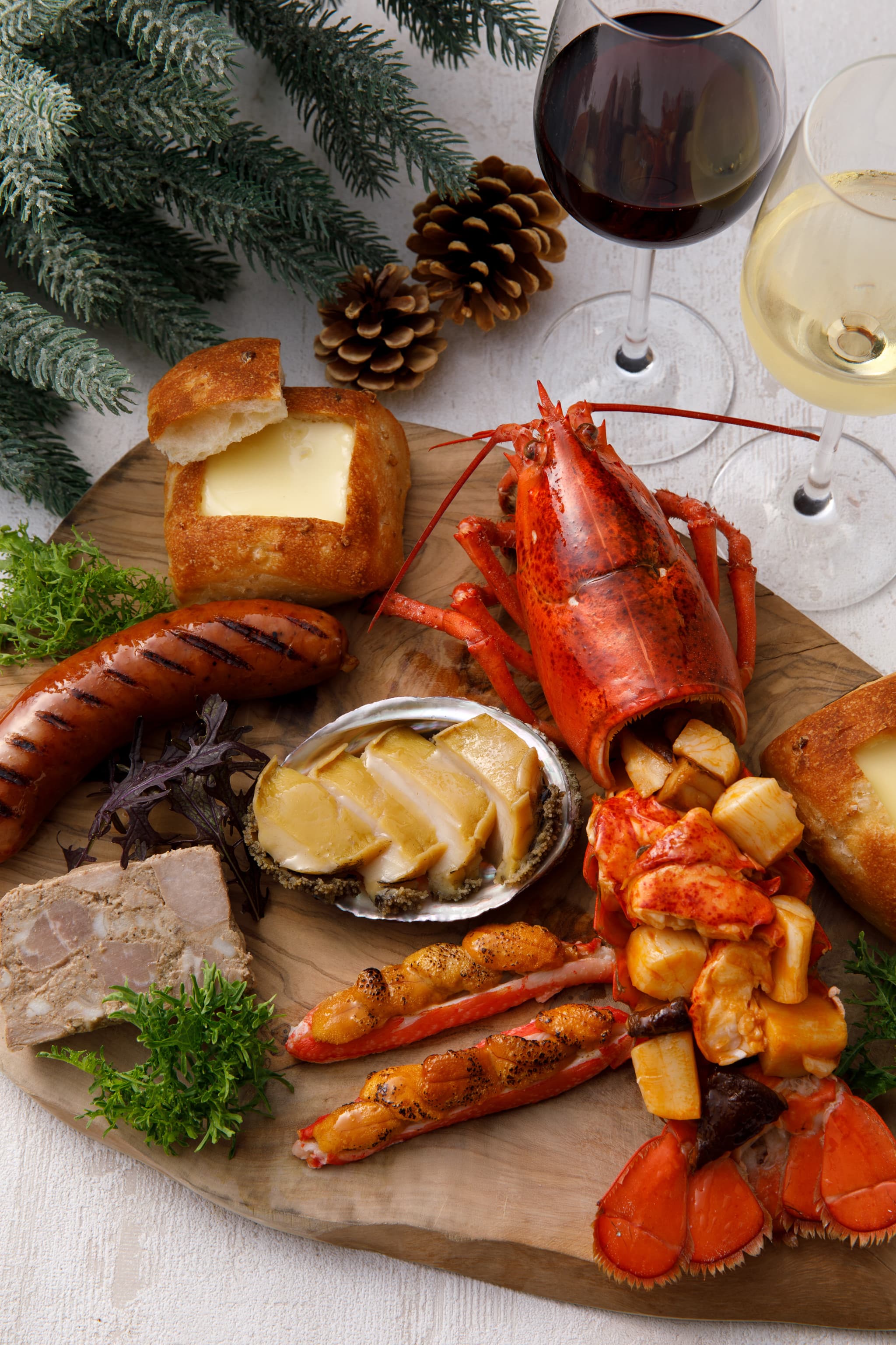 ロブスター、ホタテ、蟹、雲丹、鮑、ソーセージ、パテなど豪華食材をセット。