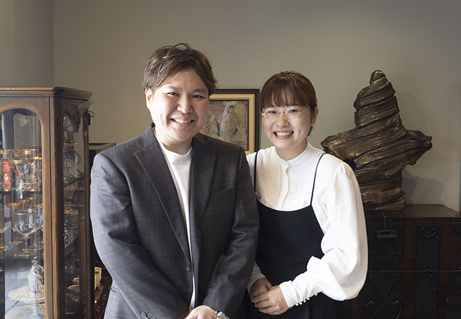 「ご来店は日曜以外予約制です」と、代表の尾崎真一さんとスタッフの宍戸茜さん。
