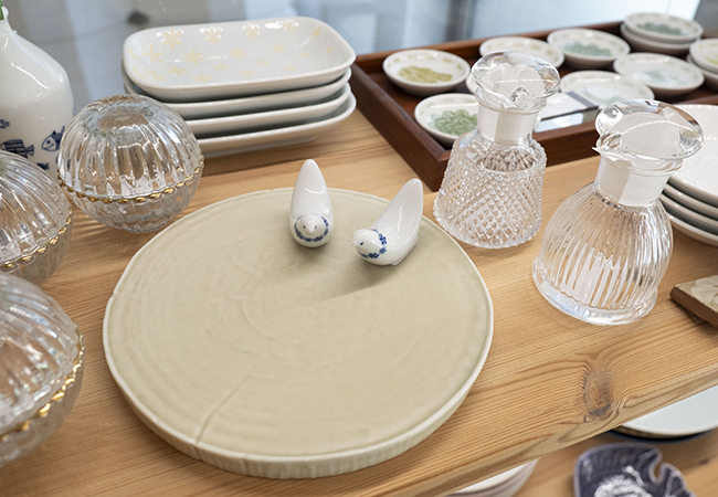 飲食店向けの業務用食器が中心のセレクトショップですが、家庭向けに1枚からでも購入できます。有田焼や波佐見焼、伊万里焼などを取り扱っており、特に窯元の新作が続々入荷するのも専門店ならでは。個人ではなかなか買えないデザインもたくさんあり、見ているだけでワクワク! ここでそろえれば、食卓のコーディネートも決まります。