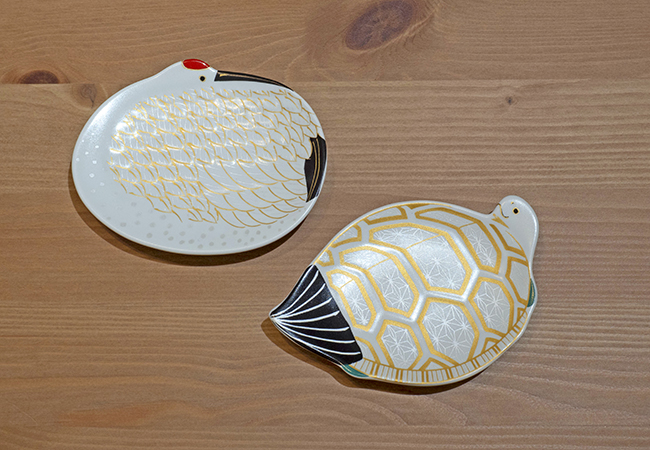 有田焼 雪衣 小皿9cm 鶴・亀/各1,723円。