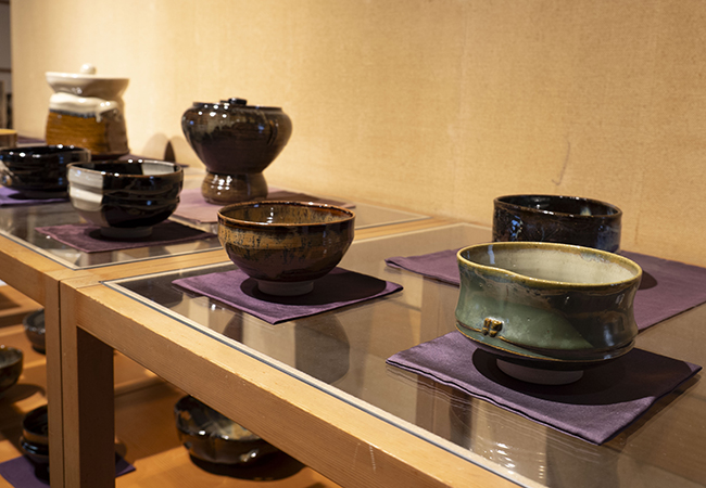 400有余年もの間、伝統を受け継ぎ守ってきた窯元。古くから茶道具が専門ですが、近年では皿やマグカップなども好評を博しています。高取焼の真骨頂は釉薬(ゆうやく)にあり。海外でも展示会を開く名陶工十五代 ⻲井味楽・十六代味楽継承者 亀井久彰の美しい作品に注目です。