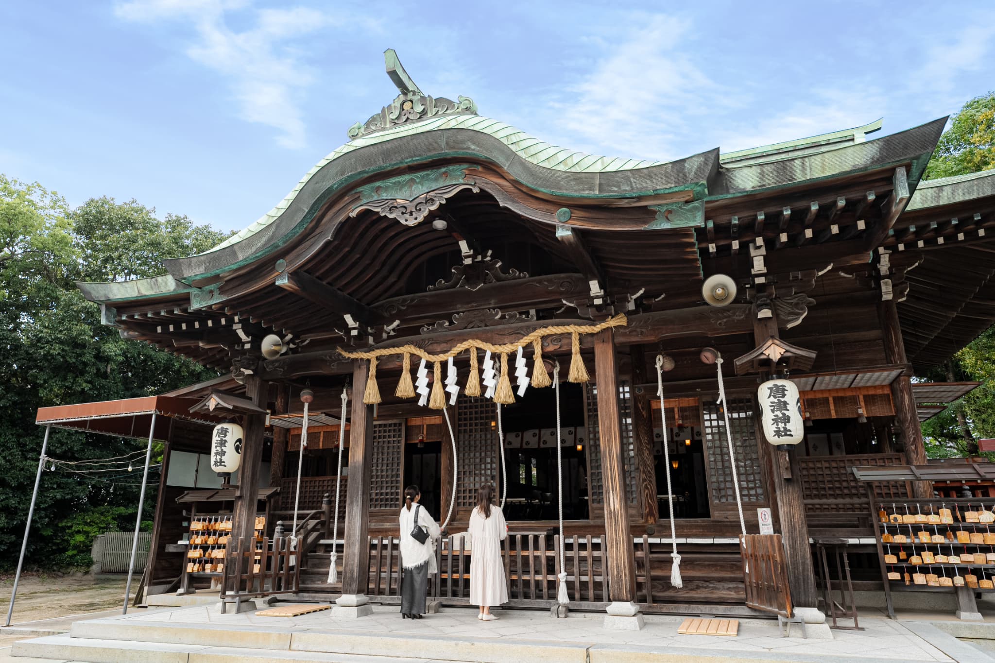 約400年の歴史を誇り、唐津城の総鎮守として親しまれ、商売繁盛や航海安全、開運招福のご利益がある神社。秋には、国の重要無形民俗文化財に指定されている「唐津くんち」が開催されます。