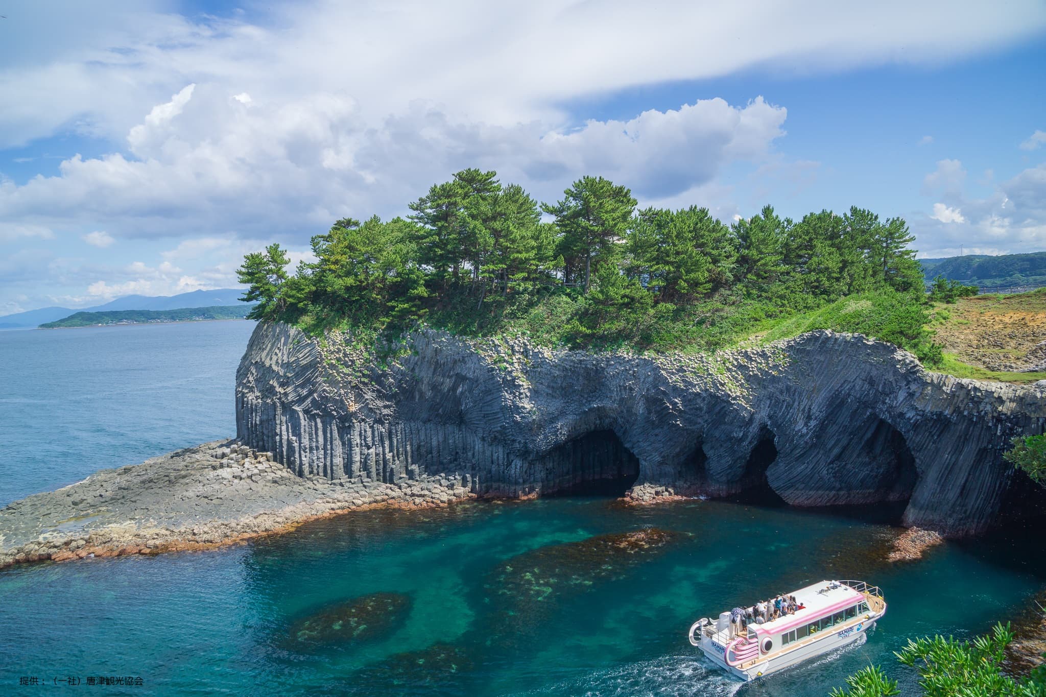 玄界灘の荒波がつくり出した国の天然記念物。玄武岩の断崖に並ぶ海蝕洞(かいしょくどう)が圧巻の景勝地。遊覧船からの鑑賞も可能です。特に、魔除けや海上安全のご利益があると伝えられています。大自然の力強さを感じながら、浄化や心身を整えるパワースポットとしても人気です。