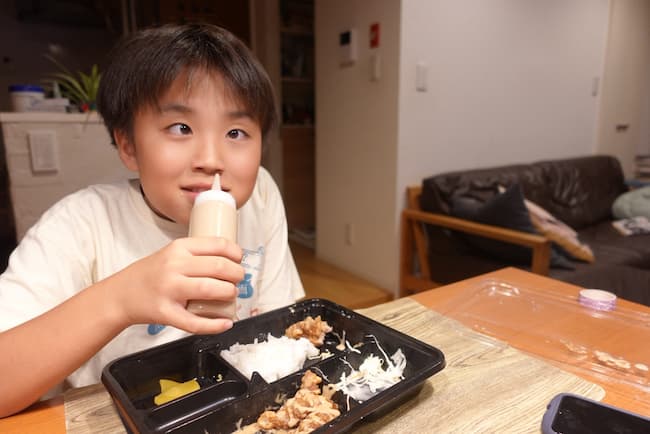 私が6番のお弁当4つと揚げ物ソースをゲットして帰宅すると、家庭内で歓声があがった。通常は家庭内で立場が弱いのだが、この日ばかりはイモ―タン・ジョーを崇めるウォーボーイズ(マッドマックスより)くらいの感じで、息子たちに歓迎された。