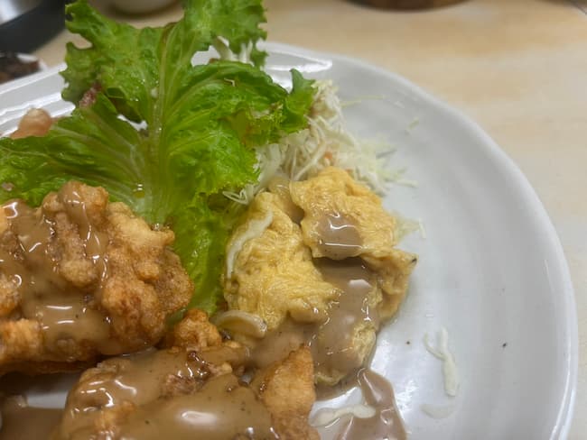 なかなかにパンチが効いたラインナップであるが、サラダでしっかり野菜もとれて、あとは付け合わせのふわっとした中華風卵焼きも美味。これだけでもう最高である。食べると元気になれるパワーライスだ。