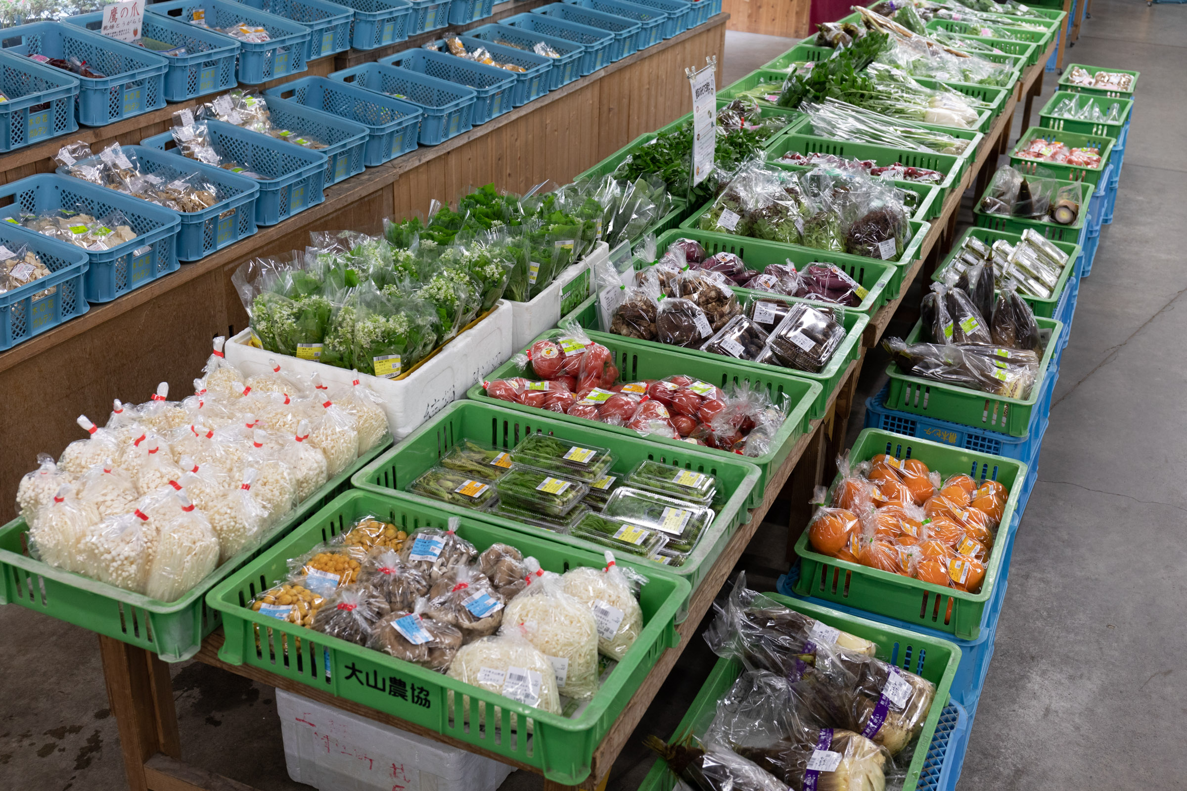 木の花ガルテン大山町本店の農産物直売所には、毎日たくさんのとれたて野菜や果物が並びます。加工品も含めると600品目も販売されているとのこと。大山町だからこそできる産地直送のおせちです。