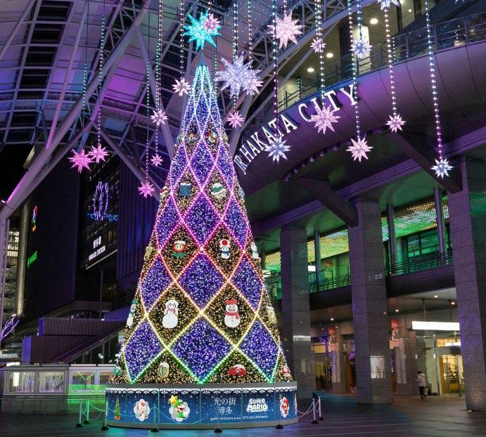 今回の特別仕様は、11月14日(金)にJR博多シティ館内にオープンする任天堂直営オフィシャルストア「Nintendo FUKUOKA(ニンテンドーフクオカ)」の開業を記念して実施。64万球の光に包まれる幻想的な空間で、マリオたちが博多の街を華やかに演出します。