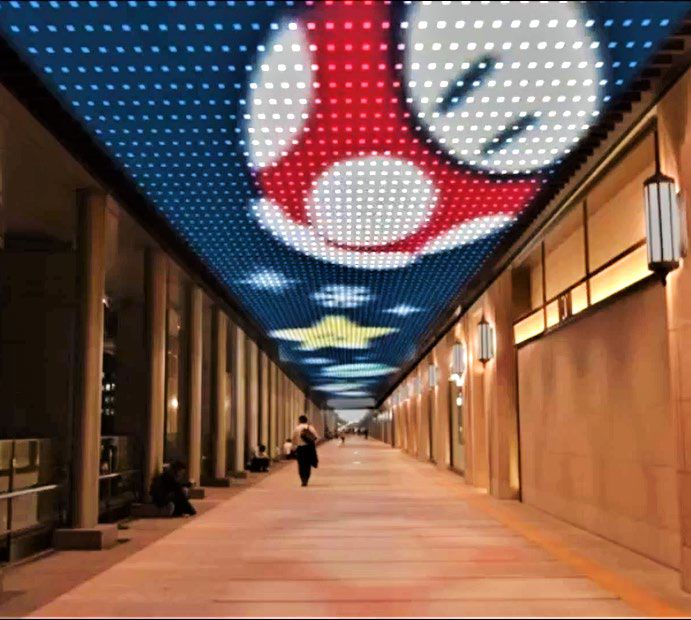 さらに、2階ペデストリアンデッキの「LED SKY WALK」では、ホリデー仕様のキャラクターたちが動き回る映像演出を展開。まるでゲームの世界に入り込んだような、心躍る体験が楽しめます。