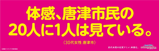 そこで、「ゾンビランドサガ ゆめぎんがパラダイス」では、アニメを視聴した佐賀県民を対象にインタビューやSNSによるアンケートを実施し、佐賀県民にしか伝わらないニッチすぎる感想コメントを集めて「中吊(なかづり)ポスター」にしています。