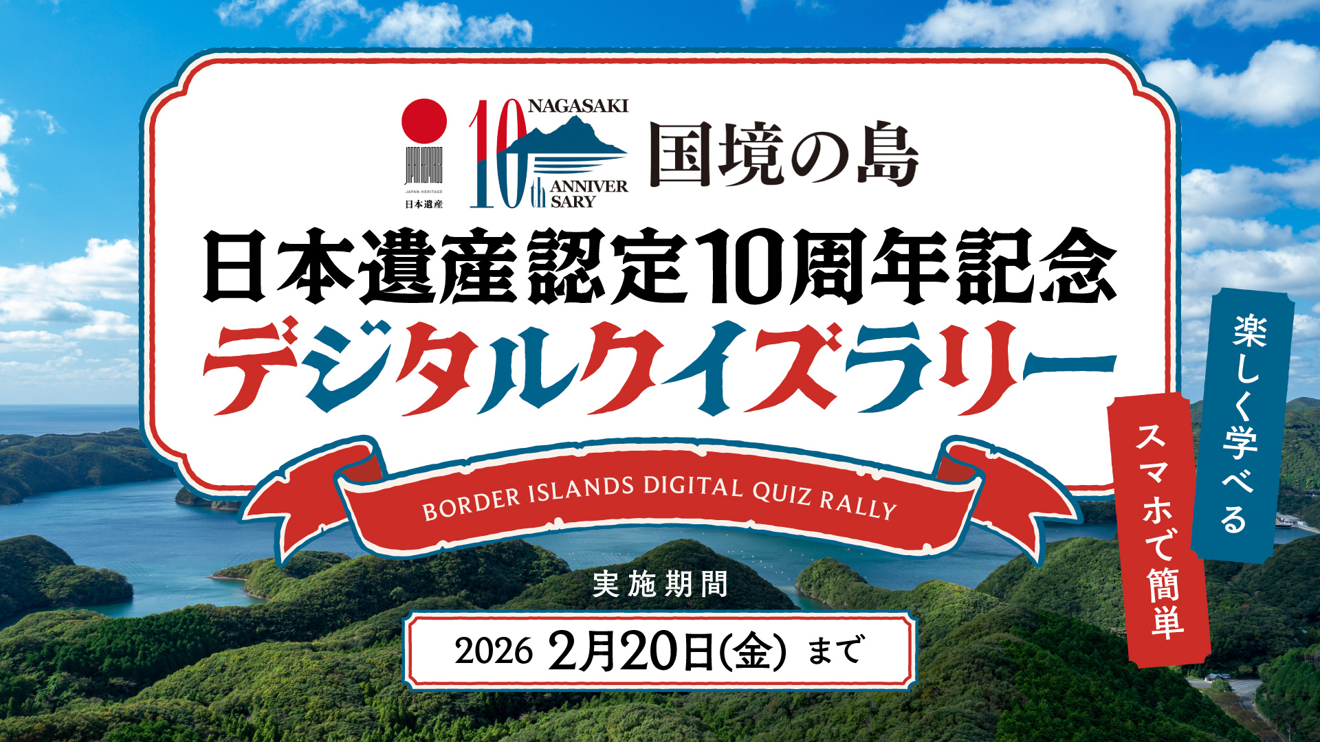 国境の島壱岐・対馬・五島~古代からの架け橋~は令和7年4月24日に日本遺産認定10周年を迎えました。これを記念して、日本遺産「国境の島」を楽しく学びながら周遊できるデジタルクイズラリーを令和8年2月20日まで開催中!ぜひ、ご参加ください!
