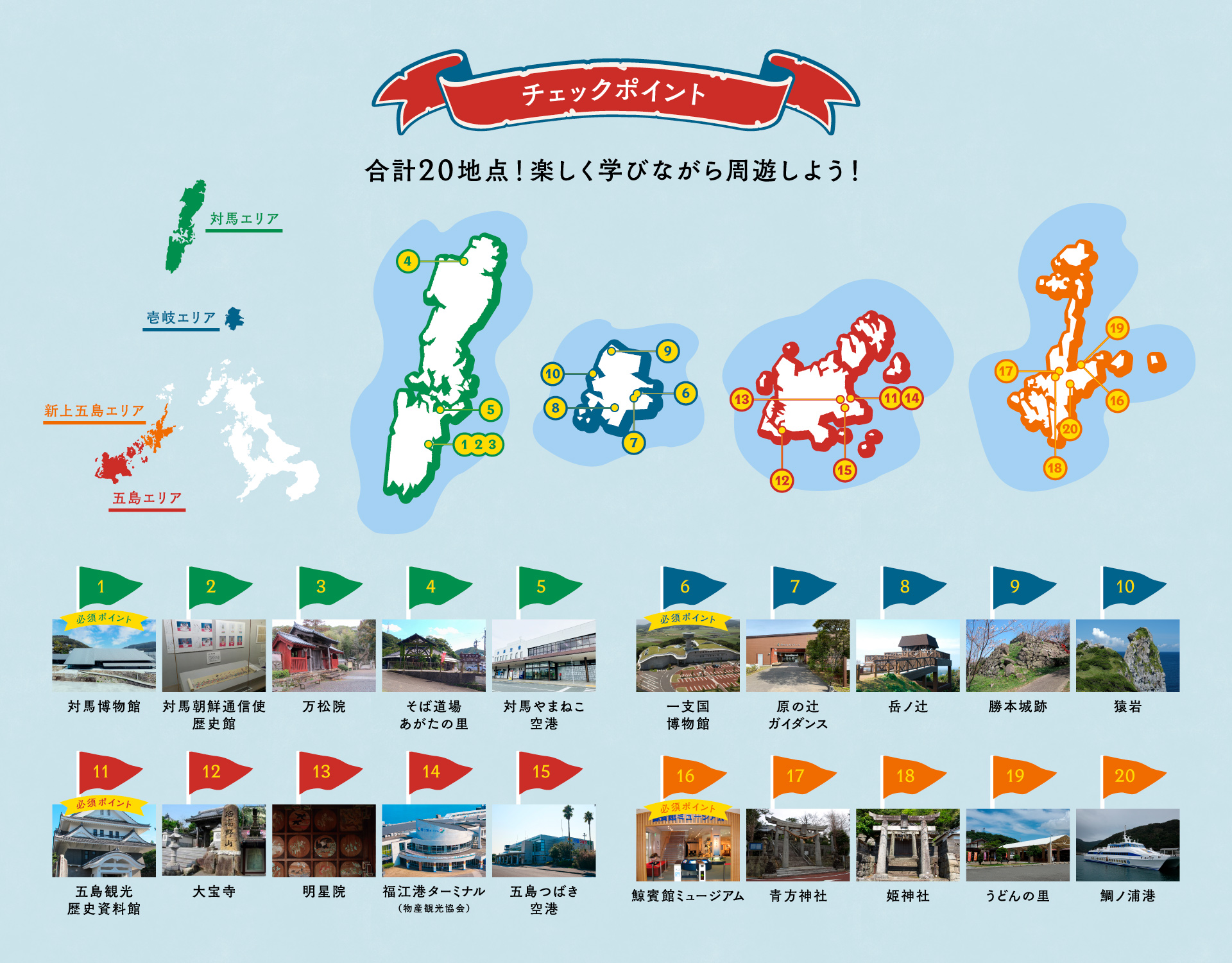 五島・新上五島・壱岐・対馬でチェックポイントは全20ヶ所!