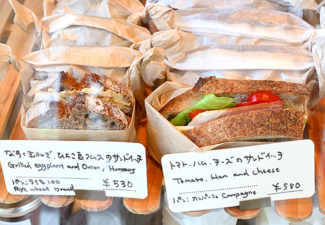 人気の「トマト・ハム・チーズのサンドイッチ」(580円)をはじめ、サンドイッチはお昼を待たずに売り切れてしまうこともしばしば。早めの来店が吉です。