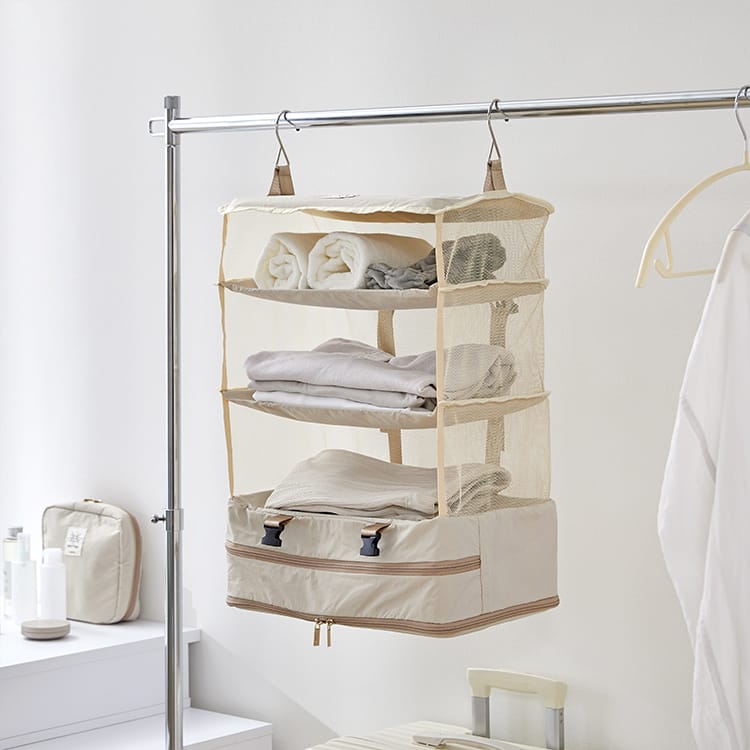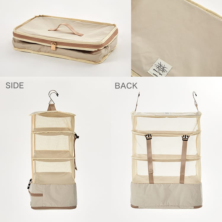 オープンスペース3段、小物入れに使えるメッシュポケットも完備。ワイヤー入りで型崩れしにくく、約3泊分の衣類を収納可能。