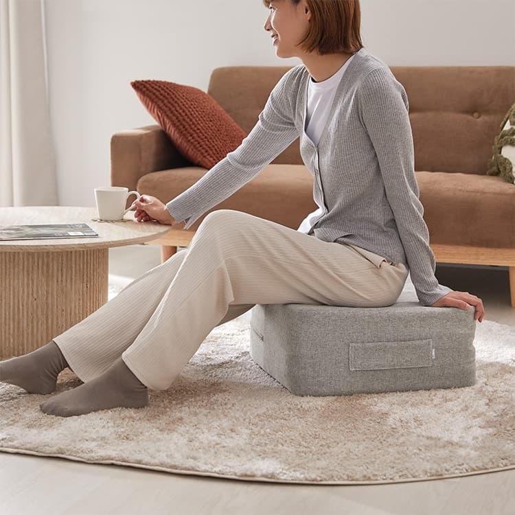 ジャンプ・オットマン・クッションの3役をこなす万能アイテム。足腰への負担を軽減する4層構造で、お好みで2タイプの弾力性を選べるのも嬉しいポイントです。