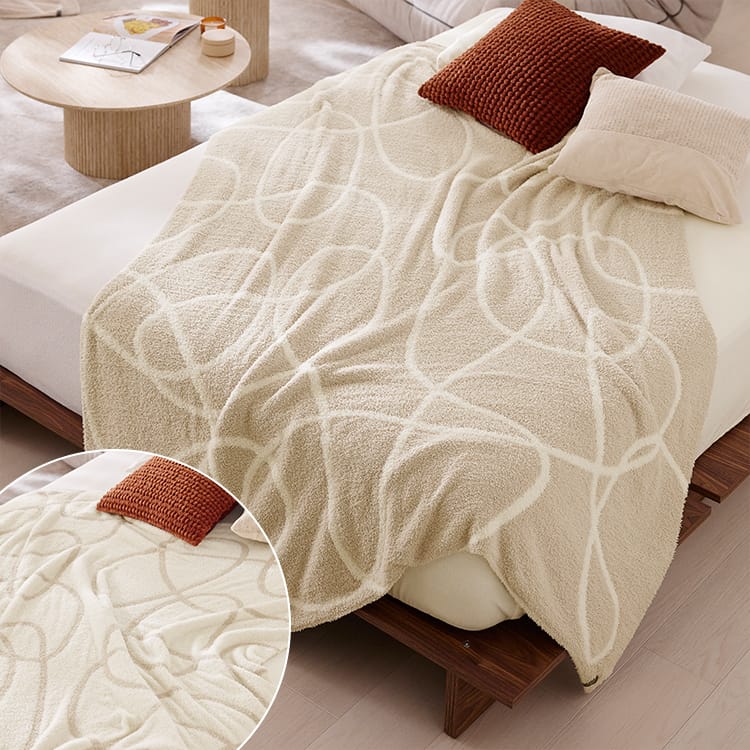 ふんわり厚手の贅沢ブランケット。アートなライン柄とカラー反転で、1枚で2通りの表情が楽しめます。