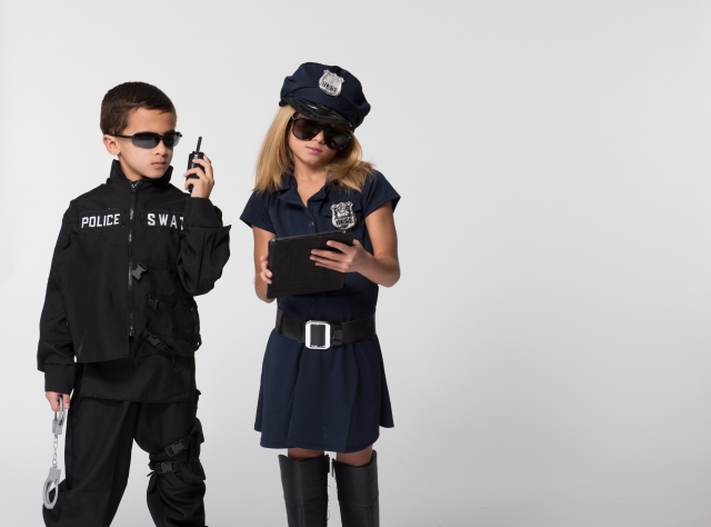入ったときは普通の服だったのが、仮装姿に変わり、髪の毛やメイクまでばっちりの状態で出てきたのです。親子はお揃いで警察官の仮装をして、手や顔には傷のようなメイクまでばっちりでした。