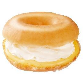 定番のオリジナル・グレーズド®をカットし、カスタードとあっさりとしたホイップを重ねたシンプルな美味しさ。※通年販売予定