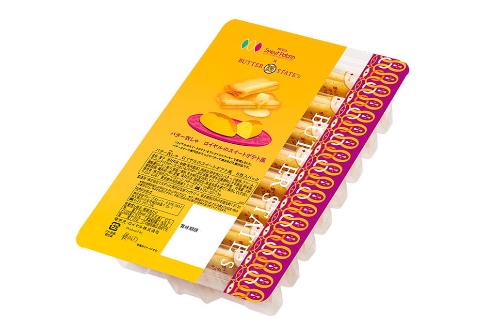 今回のコラボでは、世界初の製法(※)で焼き上げたラングドシャクッキー『バター衣しゃ』に、ロイヤルのスイートポテトの味わいを閉じ込めました。さつま芋を練り込んだ生地は、シャリッとほどける繊細な食感と、ほっこりとした甘みが絶妙にマッチ。まさに“福岡の美味しさ”を一口で楽しめる逸品です。