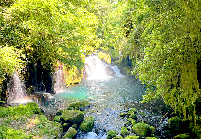 菊池川上流に位置する自然豊かな場所として知られる菊池渓谷。阿蘇外輪山の伏流水が織りなす清らかな渓流と、ケヤキやカエデなどの広葉樹林が広がる景観は「渓谷美の極致」とたたえられるほどで、日本名水百選、日本の滝百選、水源の森百選などに選ばれています。大小の滝や瀬が点在し、四季折々の美しさが魅力。秋が深まると紅葉が鮮やかになり、多くの観光客でにぎわいます。春には新緑、夏には避暑地に最適で、森林浴とともにリフレッシュできる癒やしのスポットです。