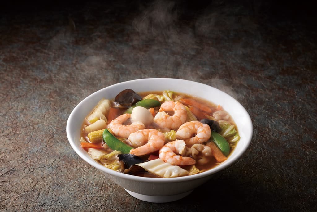 今回登場する「丸源五目そば」と「海老五目そば」は、醤油とオイスターソースをブレンドしたコク深いスープに、海老や豚肉、きくらげ、うずら玉子など8種類の具材をとろみのある餡で包み込んだ一品。食感・彩り・味わいの三拍子がそろった、丸源ラーメンならではのこだわりメニューです。