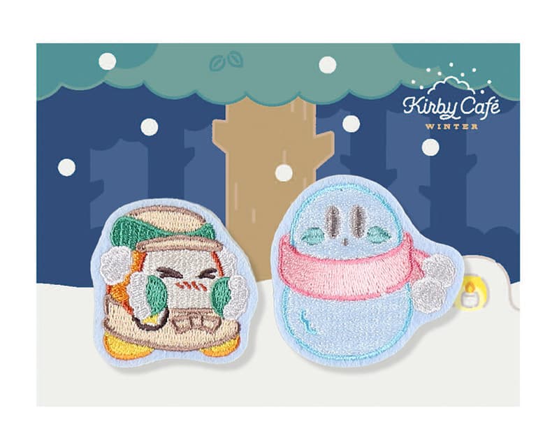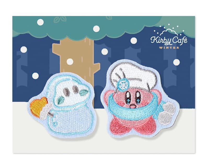 カフェ併設のグッズコーナーや「Kirby Café THE STORE」では、冬限定のアイテムが登場。カービィやワドルディの雪だるまモチーフの刺繍ブローチや、ニット素材のポーチなど、冬らしい温もりを感じるグッズが揃います。