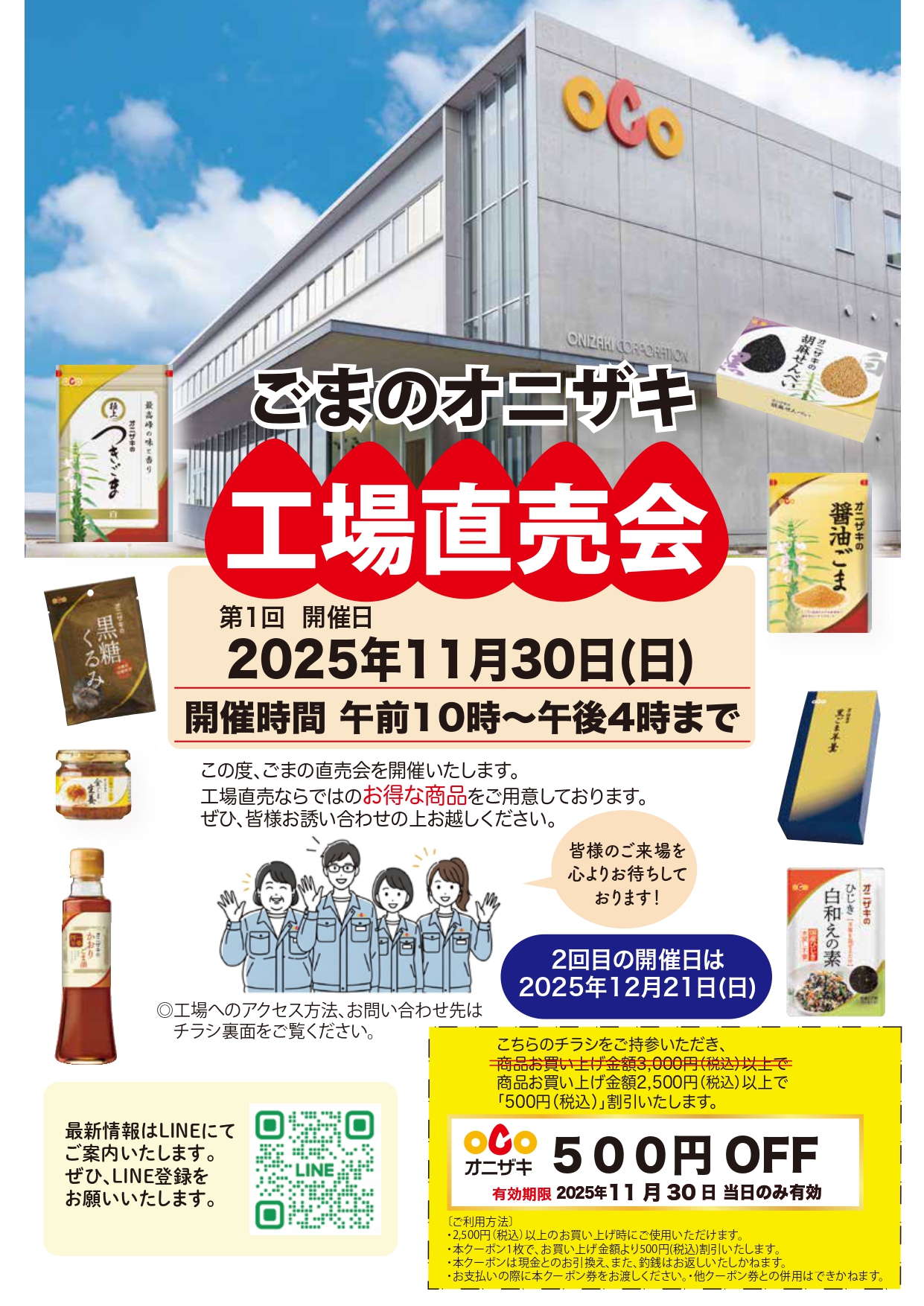 1956年の創業以来、「家庭ですぐに食べられる」美味しい”ごま”を届けてきたオニザキコーポレーションが工場直売会を実施します。