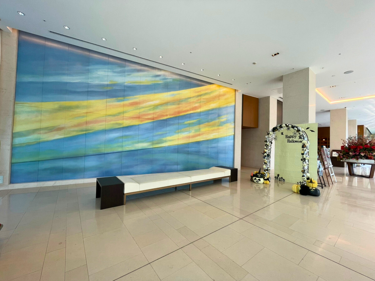 ホテル内には心地よい音楽が流れ、陶板のレリーフや和紙の照明、絵画や彫刻など、さまざまなアート作品にも触れることができます。