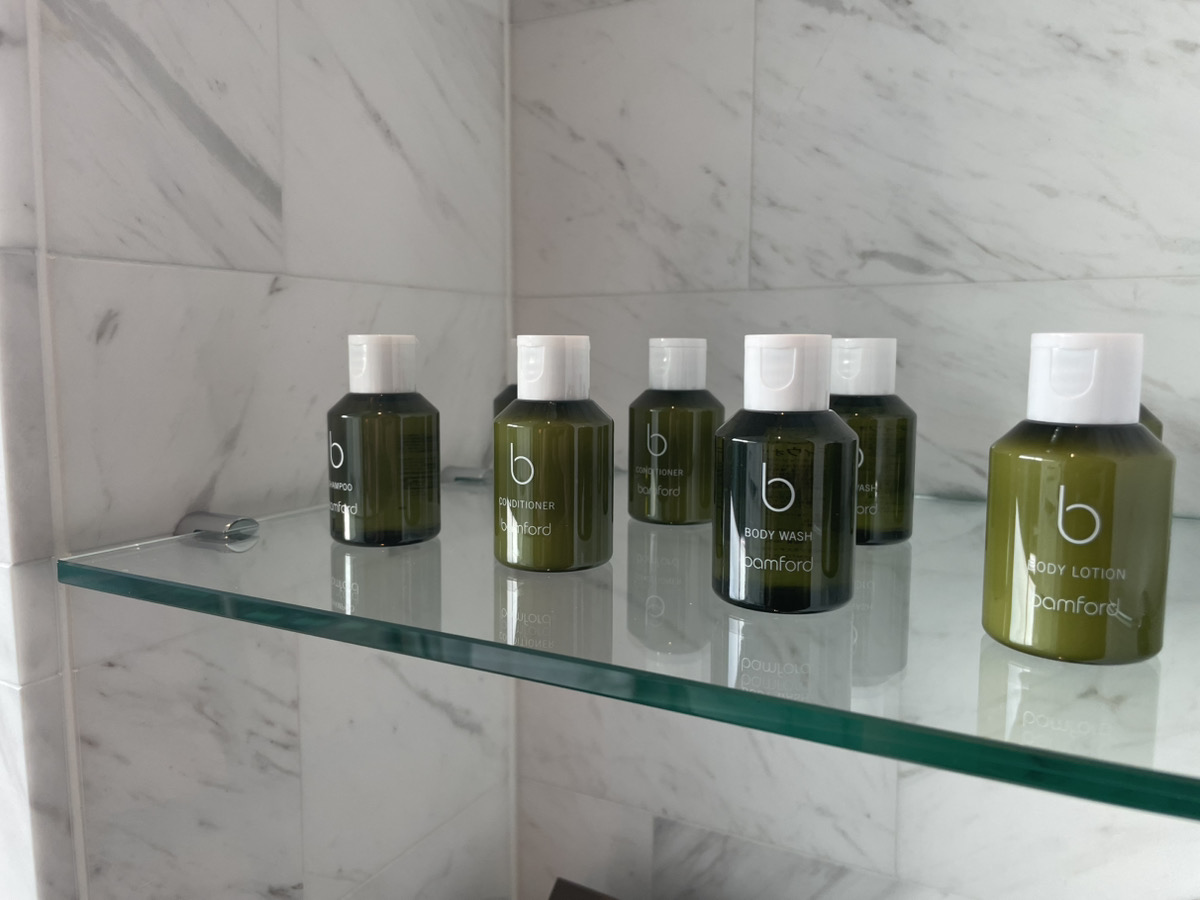 客室には英国の高級オーガニックブランド「bamford(バンフォード)」のバスアメニティが完備。シャンプー、コンディショナー、ボディソープなど、上質な香りと使い心地がバスタイムをさらに特別なものにしてくれます。
