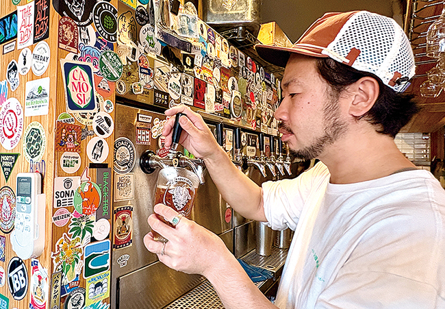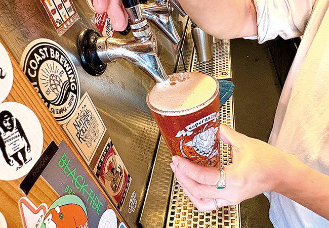 代表の黒田奨さんが選んだ全国のクラフトビールを毎日8種類ずつタップから提供。ビール本来のフレッシュな香りや味わいを、立ち飲みスタイルで気軽に楽しめます。