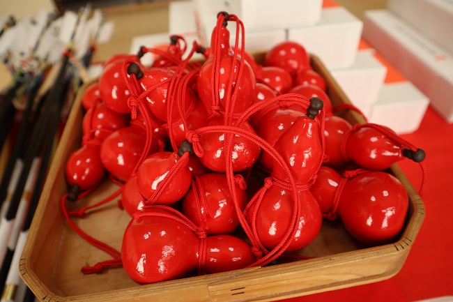 福岡市西区の鷲尾愛宕神社では、初詣参拝に向けて赤いひょうたん付き破魔矢(はまや)などの準備が着々と進められています。その様子を紹介します。