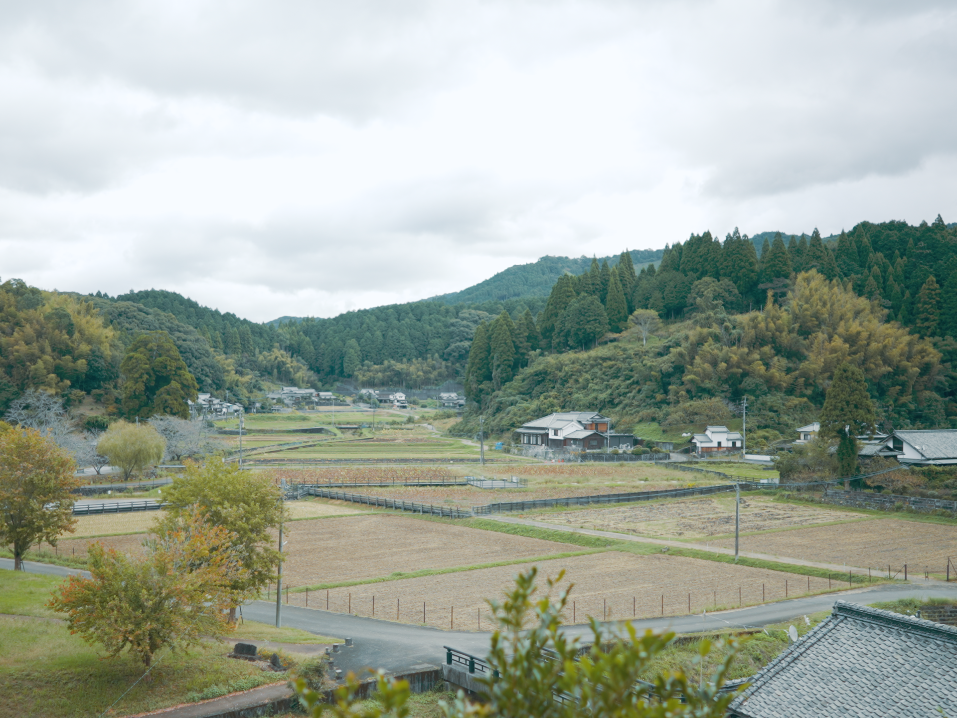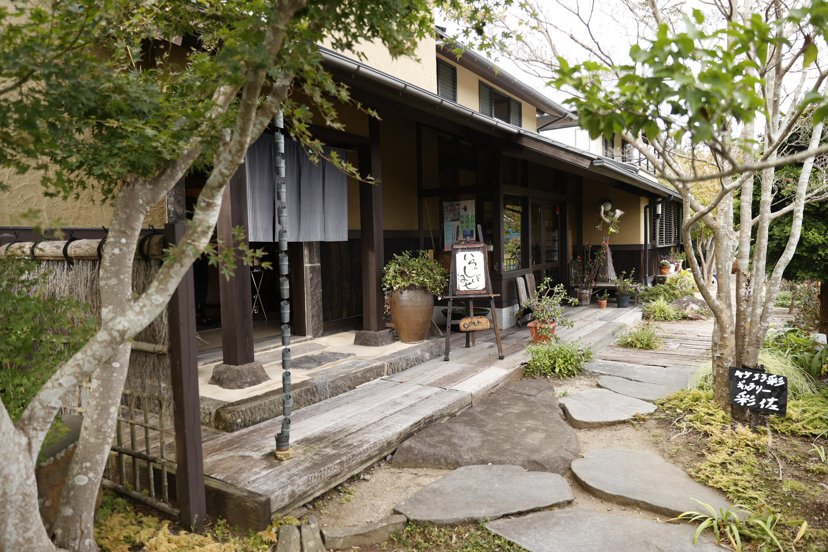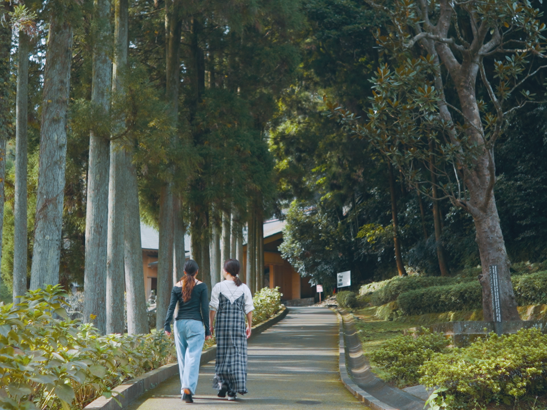 里山や田園に囲まれた臼杵焼の複合施設。洗練された上品な器の数々が魅了。