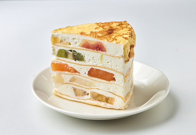 5種類の果物がたっぷり! サワークリームが爽やかな「ミルクレープ」(780円)。