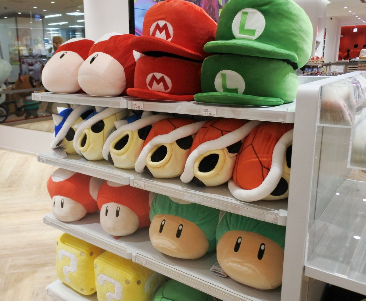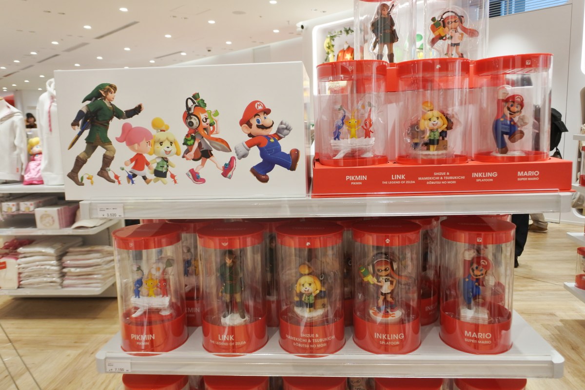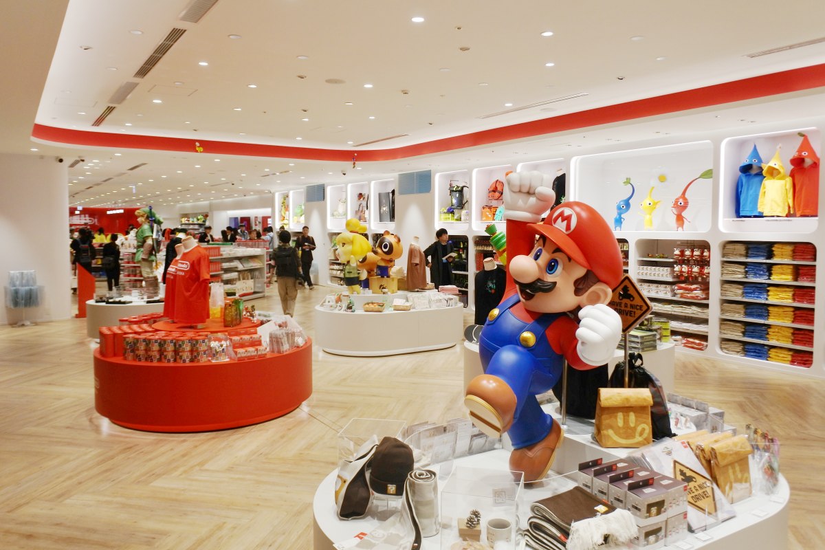 入店してまず驚くのは、このスケール感!約1,000㎡の広々としたフロアに、任天堂を代表するキャラクターが勢ぞろいしています。「スーパーマリオ」のマリオ、「ゼルダの伝説」のリンク、「スプラトゥーン」のインクリング、「どうぶつの森」のしずえとむらびと、「ピクミン」のピクミンたち…まるでゲームの世界に入り込んだようなワクワク感があふれています!