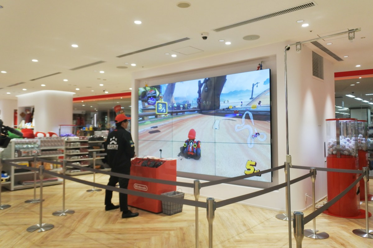 ゲーム機本体やソフトの販売はもちろん、大画面のゲーム体験コーナーも登場。オープン日のこの日は Nintendo Switch 2「マリオカート ワールド」 がプレイ可能でした。※混雑状況によって体験できない場合があります。
