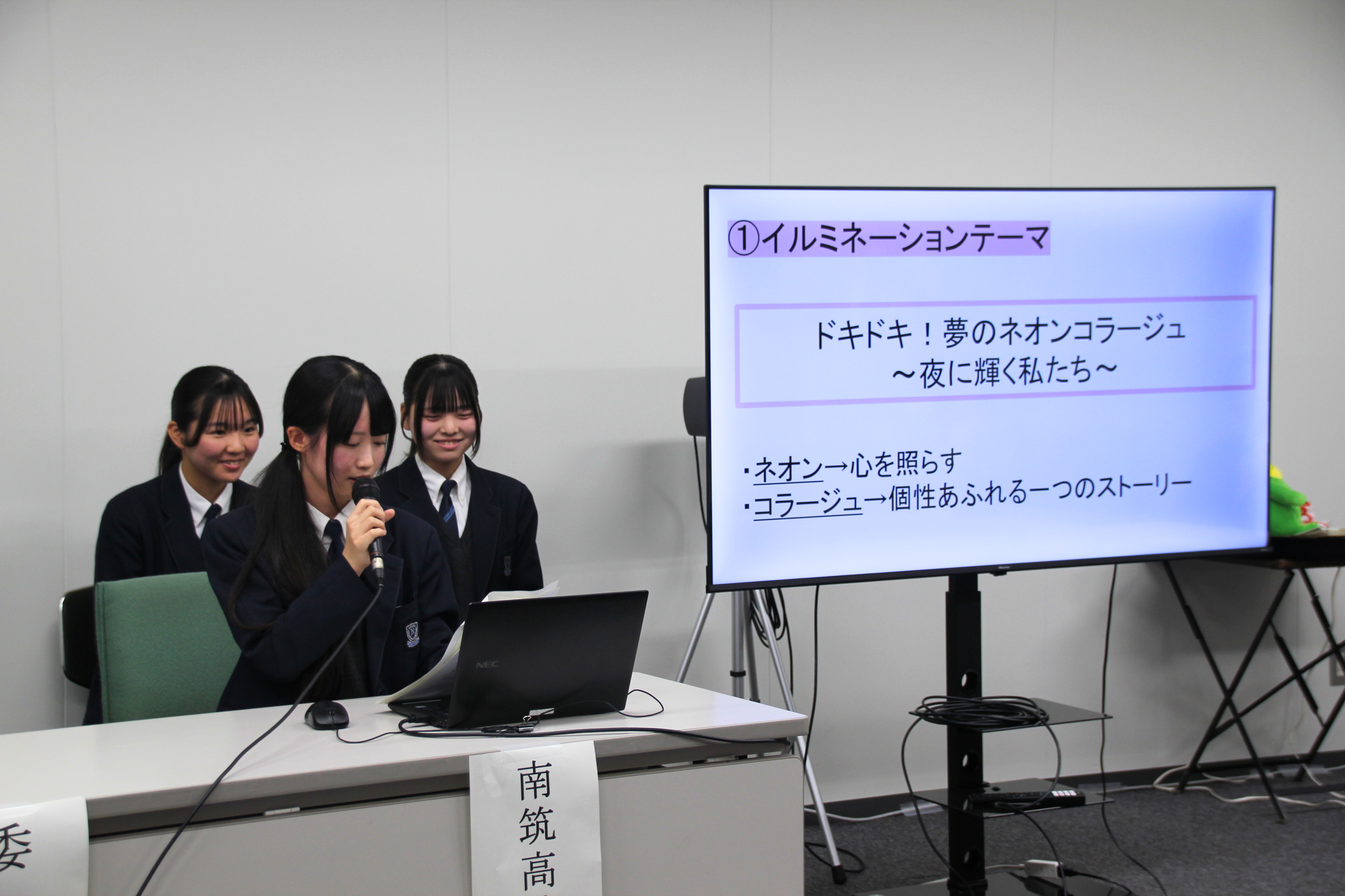 全体テーマの説明からはじまり、生徒たちが自身で考案したこだわりが詰まったイルミネーションについての解説が行われました。