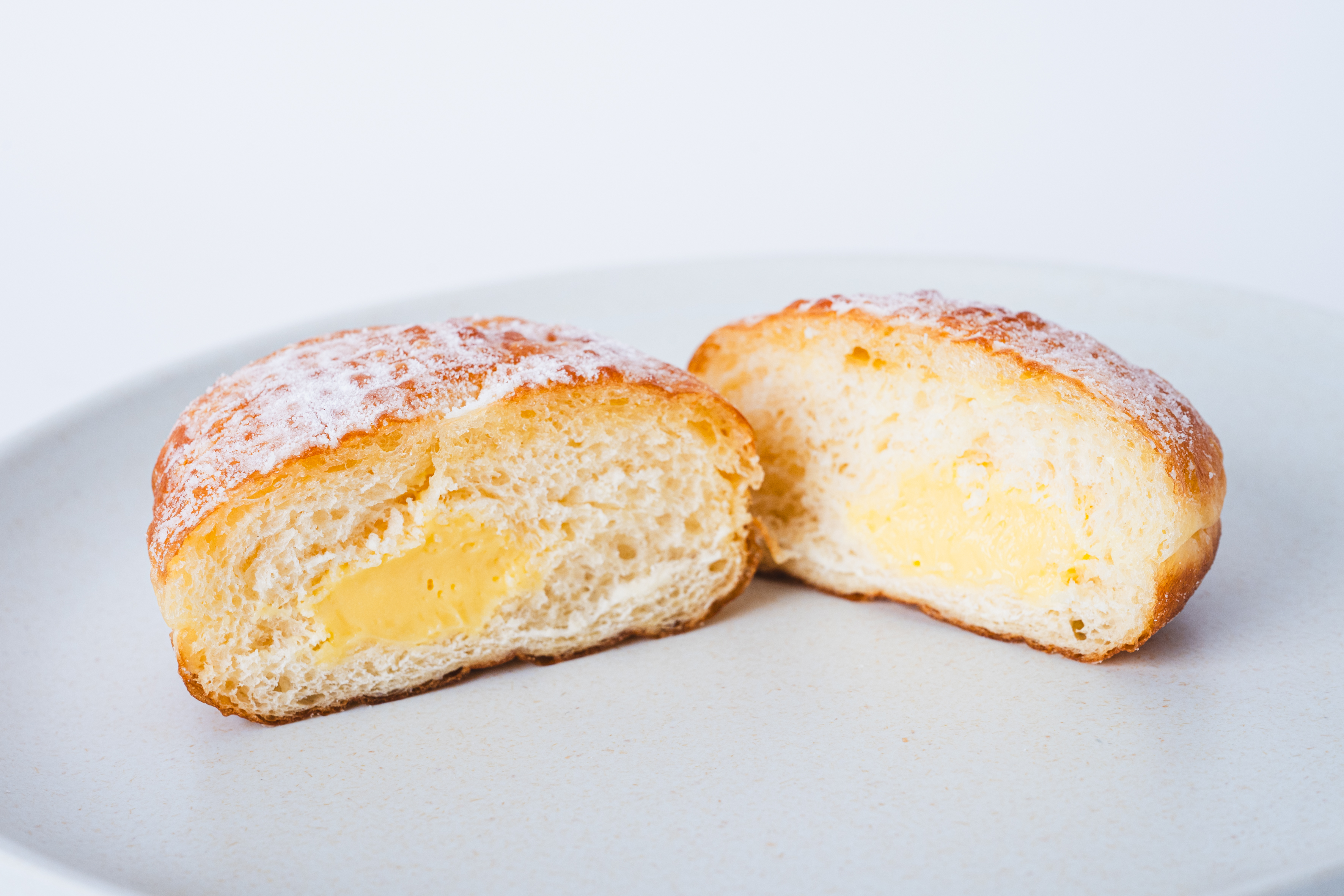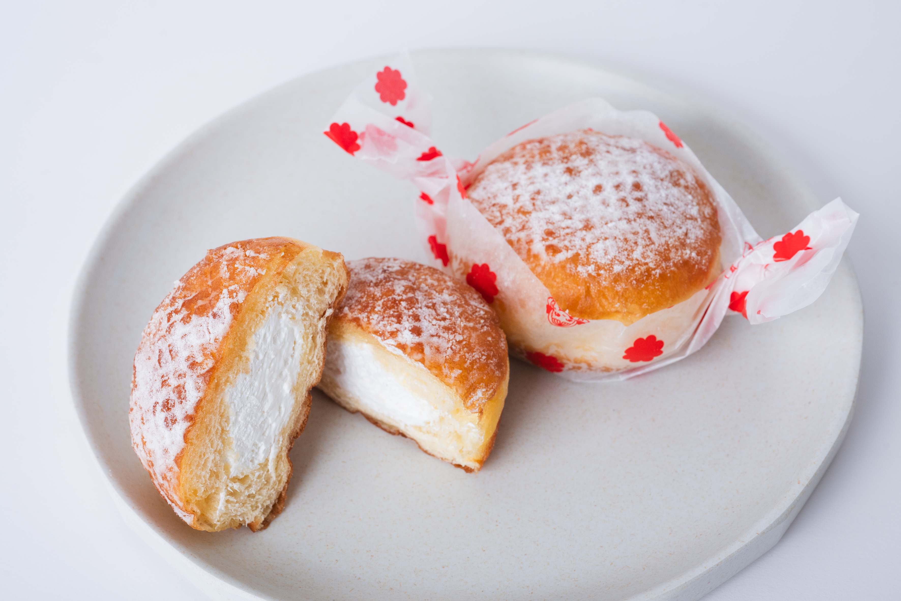 ふわもち食感に仕上げた丸いドーナツには、ミルキーに使っている北海道産練乳入りのミルキークリームをたっぷりイン。一つ一つ米油で揚げたドーナツは油っこくなく優しい味わいで、ほんのりミルキー風味のクリームはふわっと軽い口当たりです。