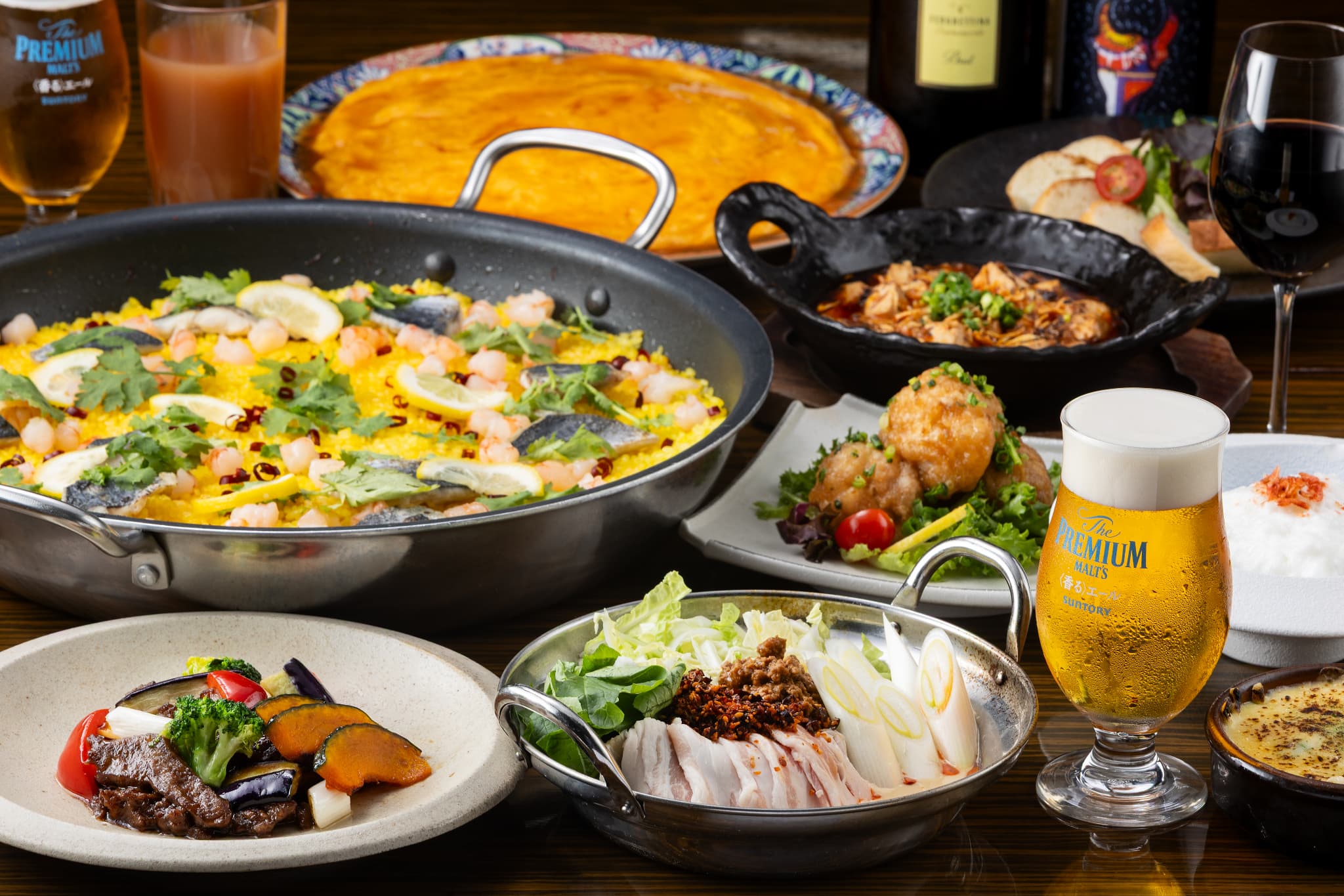 今回のプランでは、「シーフードパエリア~Chinese Style~」や「スパニッシュオムレツ~甘酢ソース~」など、ひと工夫加えた中華料理が並ぶブッフェに加え、オーダー制で楽しめる食べ放題メニューが充実。豆乳坦々鍋は、10種の具材から好みのものを選んで何度でも楽しめるのが魅力です。