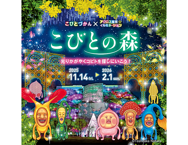 アクロス福岡のステップガーデンで毎年この時季に開かれる、九州最大級のイルミネーションイベントと児童書シリーズ「こびとづかん」が初コラボ。「カクレモモジリ」「ホトケアカバネ」といった人気コビトや“福岡県固有種コビト”のイルミネーションが華やか。コビトイルミネーションパネル全23種類を見付けたら、オリジナルステッカー(1枚)が進呈されます。